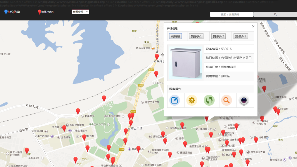 精準機箱地圖管理系統對該管區的每個箱子的名稱、所屬組織、設備類型、IP地址、都有明確的表示。能精準確定該箱所屬地理位置。